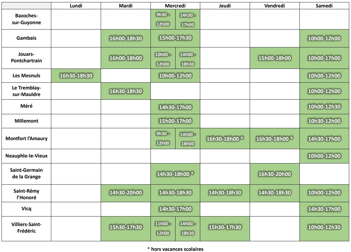 Mercredi : 14h30-18h00 (hors vacances scolaires)