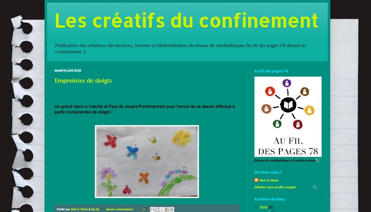 Ils seront ajoutés sur la page facebook du réseau et sur notre blog Les créatifs du confinement.