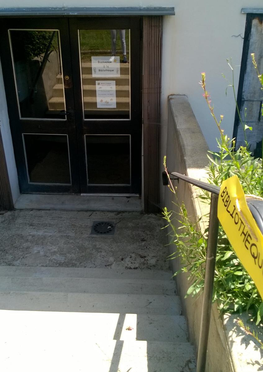 Pour s'y rendre : se garer sur le 1er parking disponible après l’école, puis revenir sonner au portail noir, pour que la bibliothécaire vous ouvre. L’entrée de la bibliothèque se trouve au fond de l’allée après le grand sapin, à gauche (Escalier à descendre).